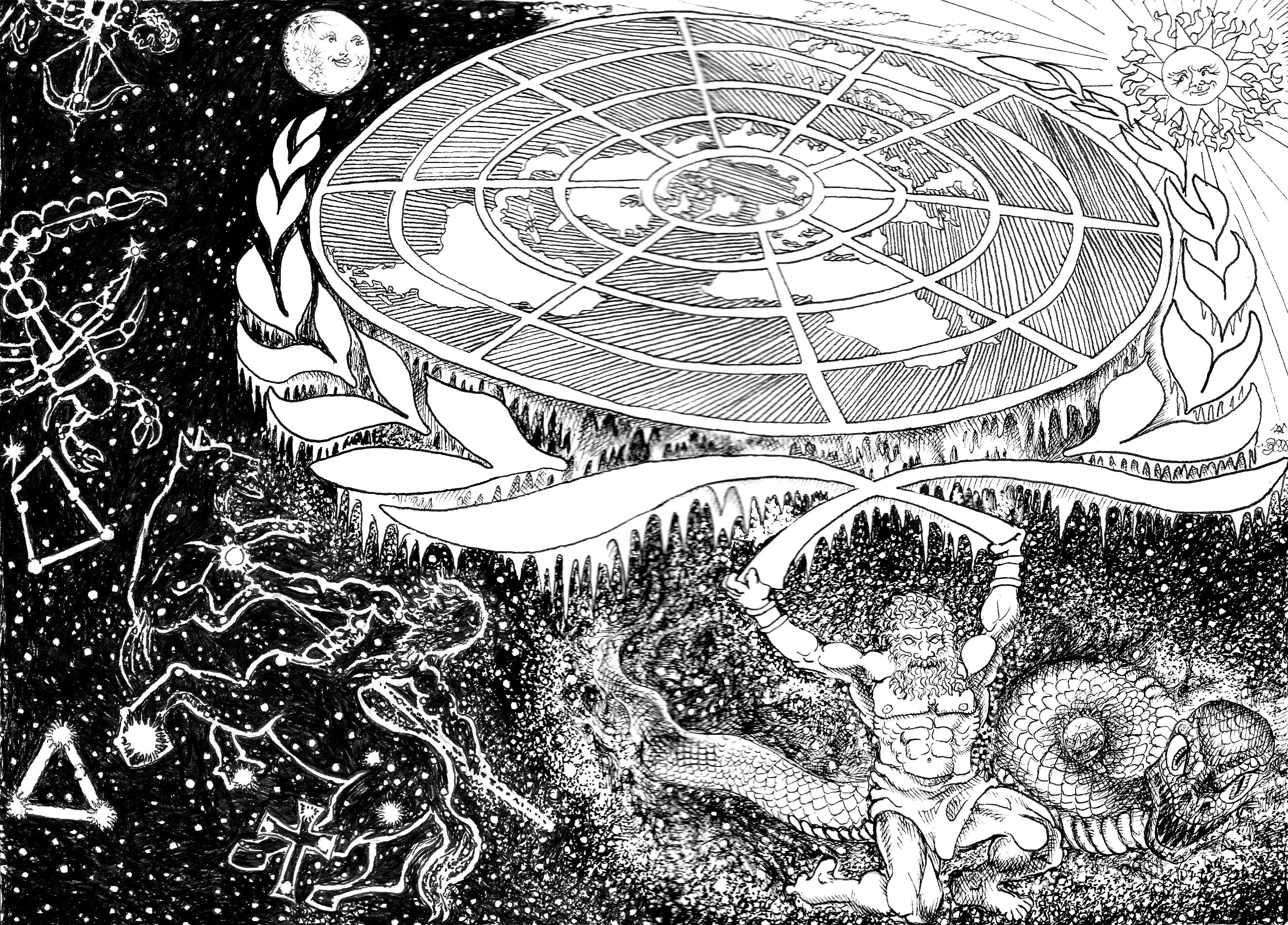 The flat Earth on this year’s drawing is surrounded with